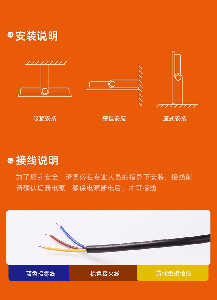 注:此款燈需外接電源,接線前請(qǐng)確保已切斷電源方可操作,非專業(yè)人士請(qǐng)勿操作