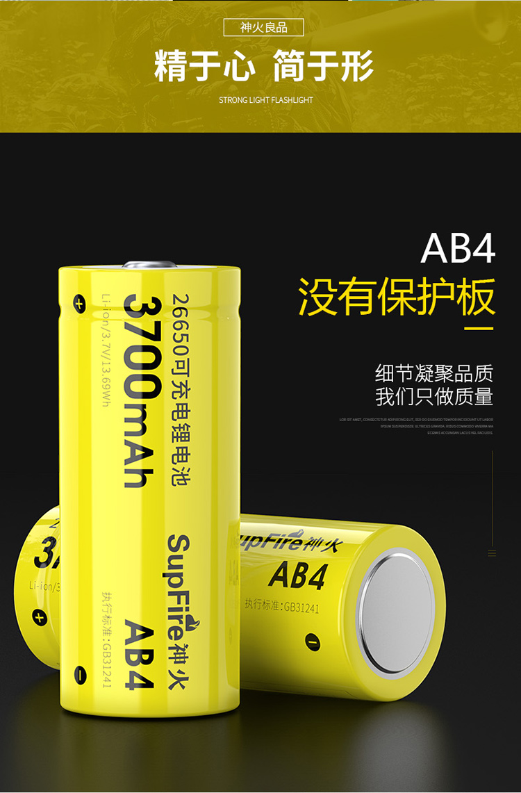 大容量電池;規(guī)格:26650鋰充電電池,3700mAh