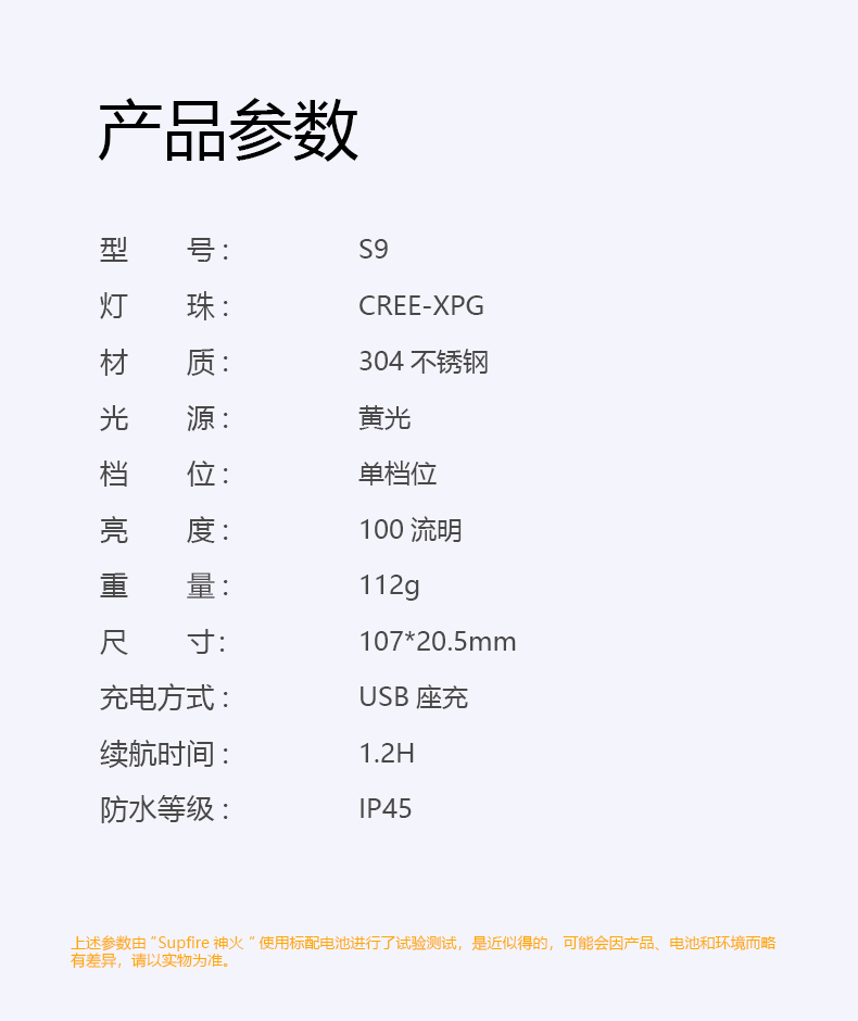 1、精致小巧設(shè)計(jì),37G迷你便攜不累贅; 2、鋁合金外殼,防水抗壓; 3、五檔一鍵切換,適用多重場(chǎng)景。