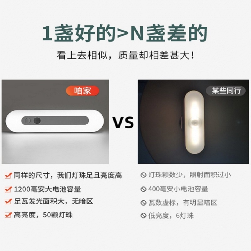 1.人來即亮,人走漸滅;一按長亮模式、二按感應(yīng)模式、三按關(guān)閉、長按2秒無極調(diào)光,柔光護(hù)眼;