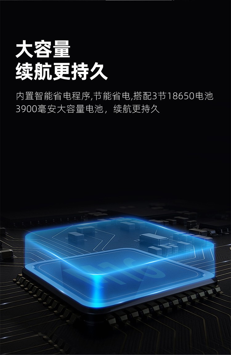 3顆P50燈芯,設有省電程序,續(xù)航更持久。設有防過充、防過放、防反接、低壓提醒、低壓關斷燈五重程序,使用更安全。