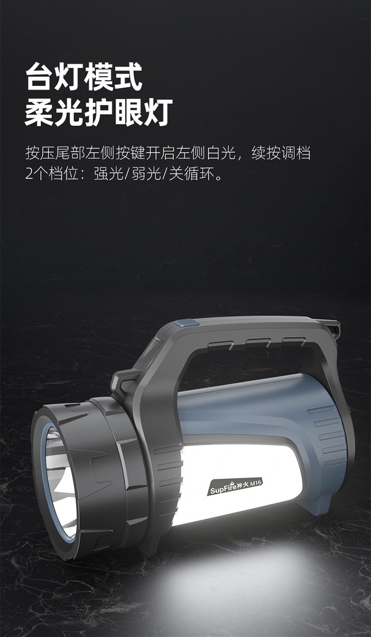 1、精致小巧設計,37G迷你便攜不累贅; 2、鋁合金外殼,防水抗壓; 3、五檔一鍵切換,適用多重場景。